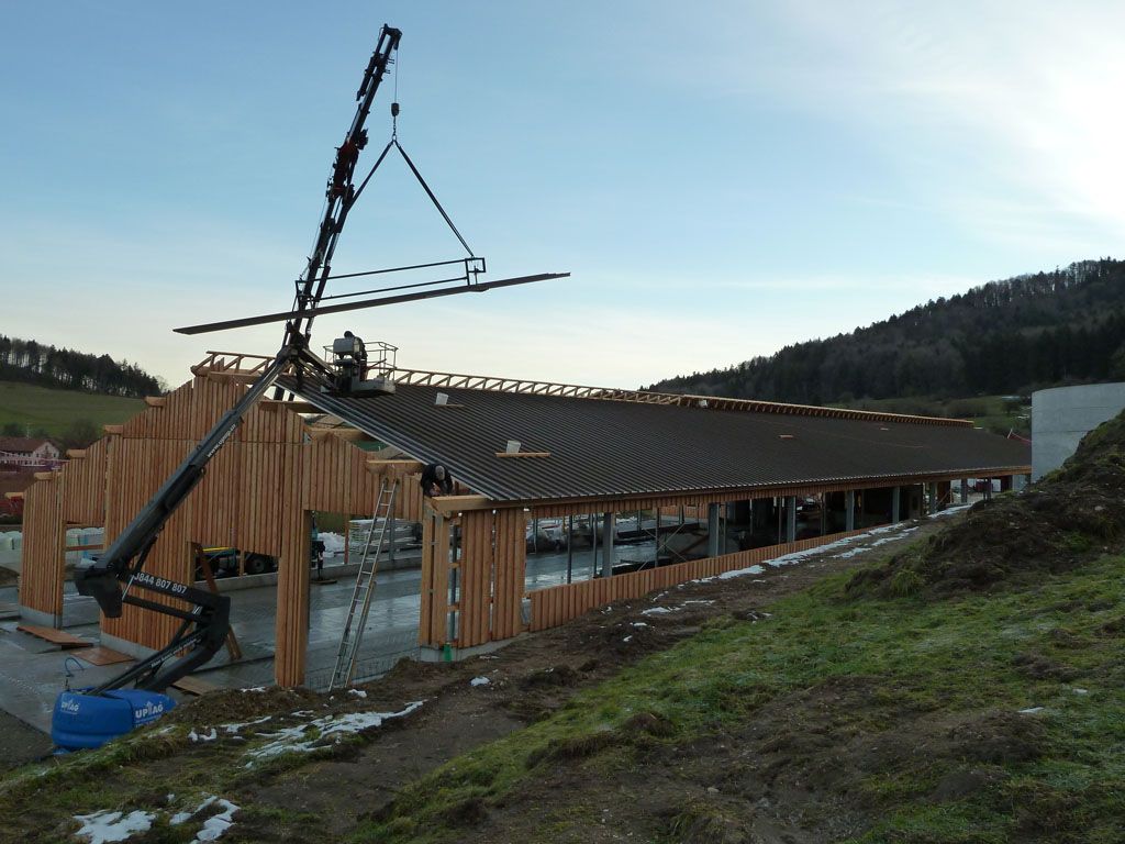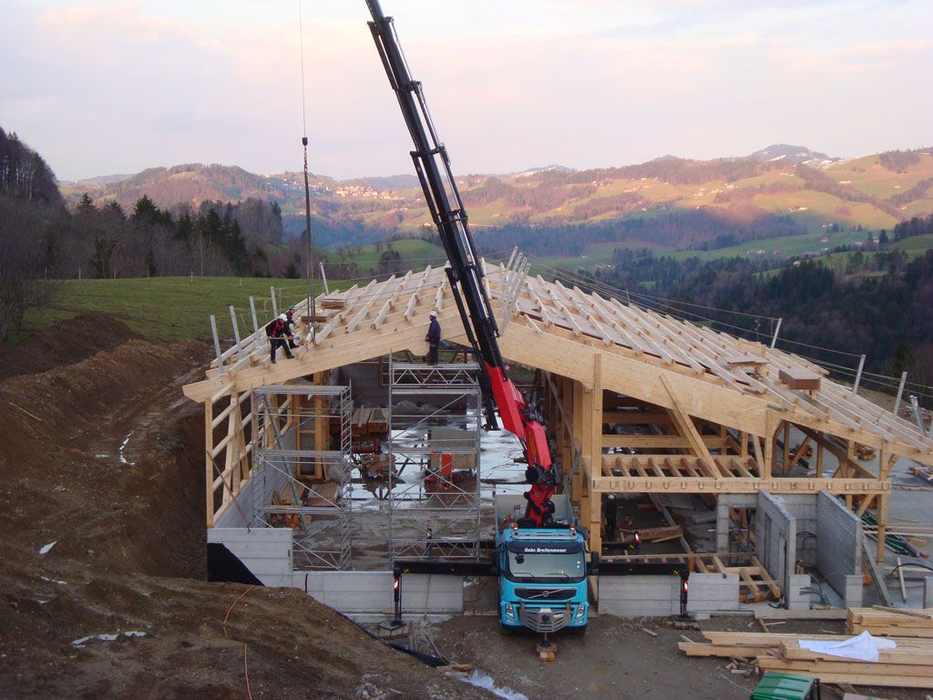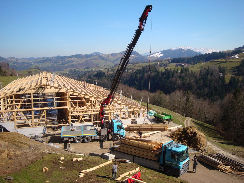 - Dachstühle und Hallen transportieren und aufstellen mit Kran